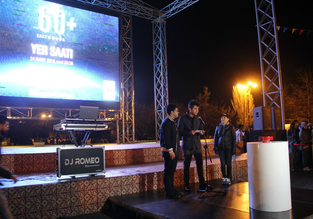 Aksiya iştirakçıları Dənizkənarı Milli Parkda toplaşaraq şəhərin mərkəzi hissəsində yerləşən böyük binaların fasad işıqlarının bir saatlıq söndürülməsi prosesini müşahidə ediblər. Gənclər simvolik “qırmızı düymə”yə basaraq birgə aksiyaya start veriblər. Daha sonra, rəmzi gerisayımda kampaniyanın rəmzi olan “60+” yazısının şamlarla işıqlandırılmasında və velosiped yürüşündə iştirak ediblər.