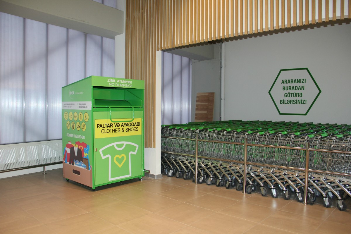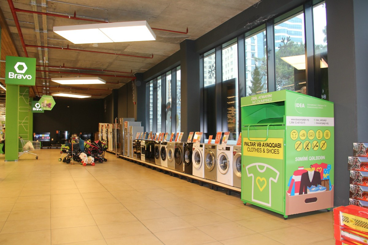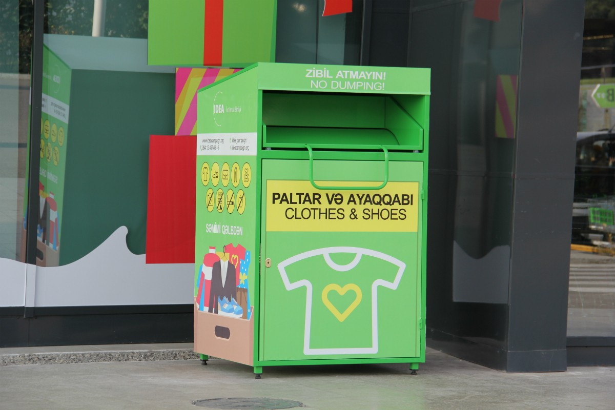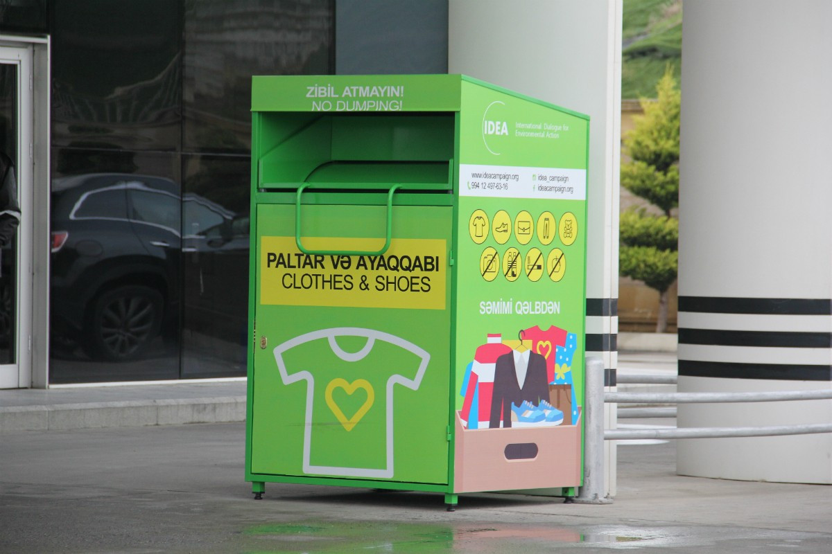 Təkrar istifadənin ətraf mühitə müsbət təsirini və geyim əşyalarına olan tələbatı nəzərə alaraq, IDEA İctimai Birliyi tərəfindən Bakıda istifadəsiz paltar və ayaqqabıların toplanması üçün ianə qutuları quraşdırılmışdır. Şəhərimizin müəyyən nöqtələrində yerləşdirilən qutulara insanlar artıq istifadə etmədikləri və paylaşmaq istədikləri geyimlərini yerləşdirə bilər. Bu cür xeyriyyə məqsədli təkraristifadə qutuları ilkin olaraq “Bravo” hipermarketləri və Babək prospektində yerləşən “Bravo” superstorda, həmçinin həmin prospektdəki “SOCAR Petroleum” yanacaqdoldurma məntəqəsində quraşdırılmışdır. Yaxın vaxtlarda oxşar paltar toplanma qutularının Bakının digər münasib yerlərində də quraşdırılması nəzərdə tutulur.