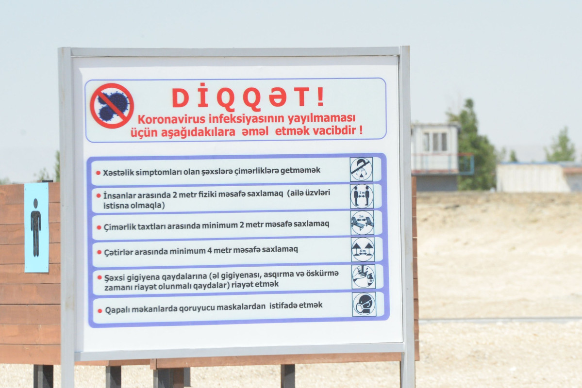 Çimərlikdə karantin dövrünün tələblərinə uyğun olaraq tibbi-profilaktiki tədbirlər həyata keçirilib, insanların lazımi məsafə saxlaması üçün ərazi boyu baryerlər çəkilib, dezinfeksiya dispenserləri qoyulub, karantin və təhlükəsizlik qaydalarına, eləcə də təmizliyə riayət olunması ilə bağlı xəbərdarlıq edən maarifləndirici lövhələr quraşdırılıb.