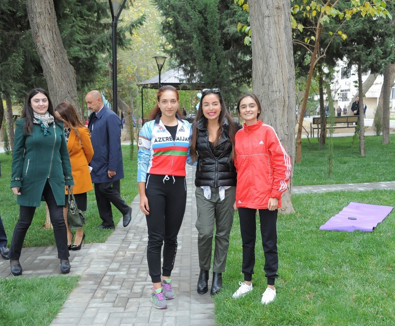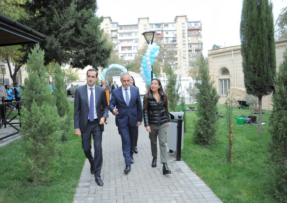 Heydər Əliyev Fondunun vitse-prezidenti, IDEA İctimai Birliyinin təsisçisi və rəhbəri Leyla Əliyeva həyətin açılışında, o cümlədən tədbir zamanı keçirilmiş kütləvi ağacəkmədə iştirak edib.