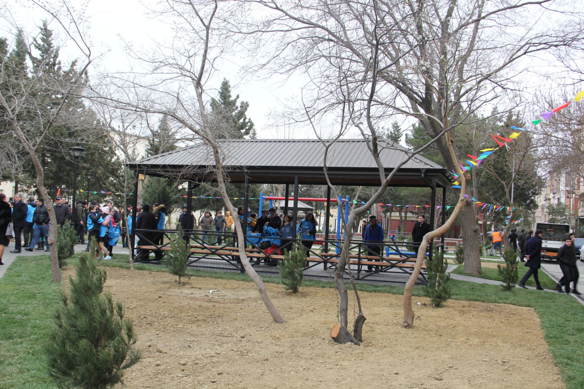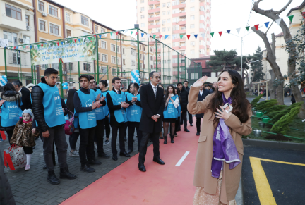 Heydər Əliyev Fondunun vitse-prezidenti, IDEA İctimai Birliyinin təsisçisi və rəhbəri Leyla Əliyeva həyətin açılışında, o cümlədən tədbir zamanı keçirilmiş kütləvi ağacəkmədə iştirak edib.