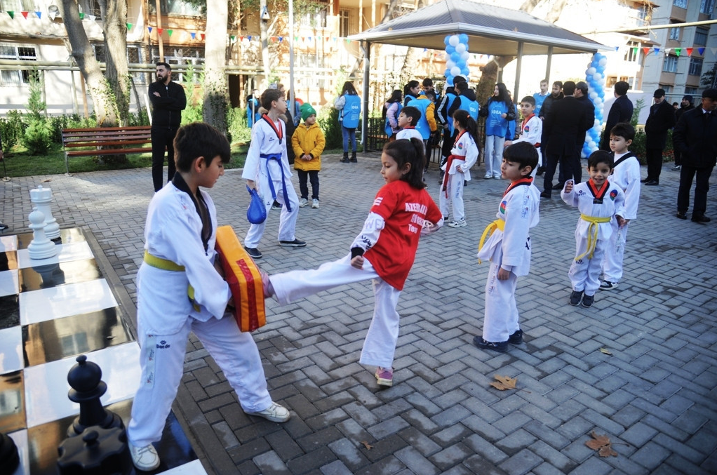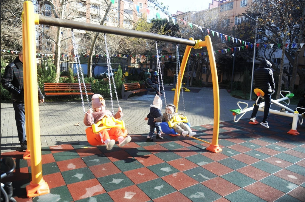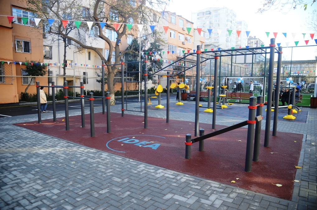 Abadlaşdırılan növbəti həyətdə əlil və sağlamlıq imkanları məhdud insanların rahat hərəkəti nəzərə alınıb, bütün yaş qrupları üzrə uşaqların inkişafı üçün əlverişli şəraitin yaradılması, gənclərin asudə vaxtlarının səmərəli keçirmələri və onlarda sistematik idmanla məşğulolma refleksinin yaradılması məqsədilə ərazidə süni örtüklü mini futbol stadionu, şahmat meydançası, müxtəlif idman qurğuları, uşaq meydançaları salınıb. Eyni zamanda, ərazidə 18 söhbətgah, çoxsaylı oturacaqlar, tullantılar üçün qutular, quş yuvaları və pişik evləri quraşdırılıb.