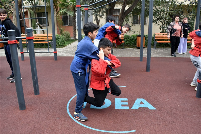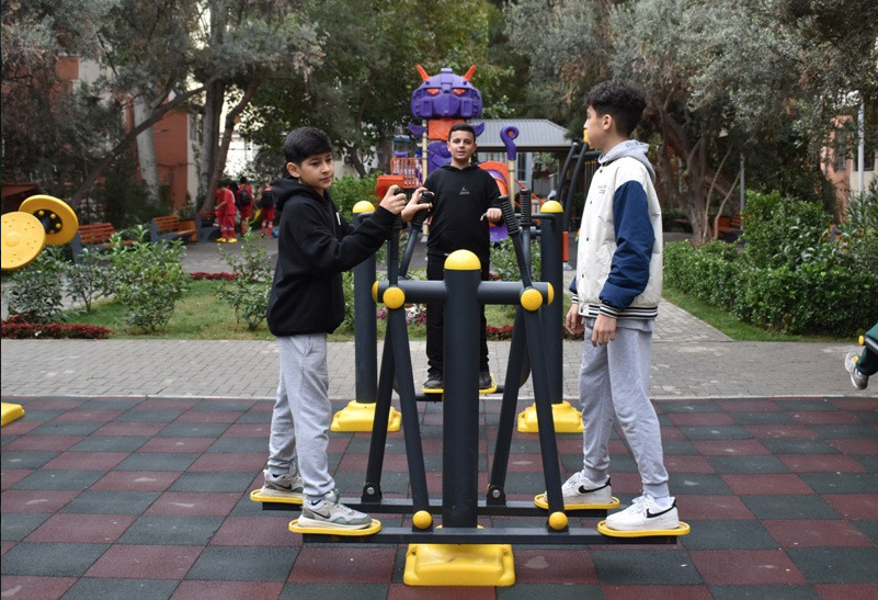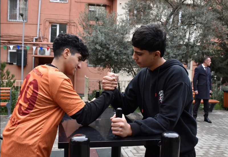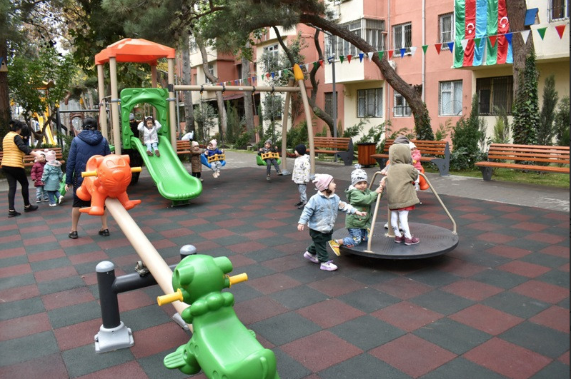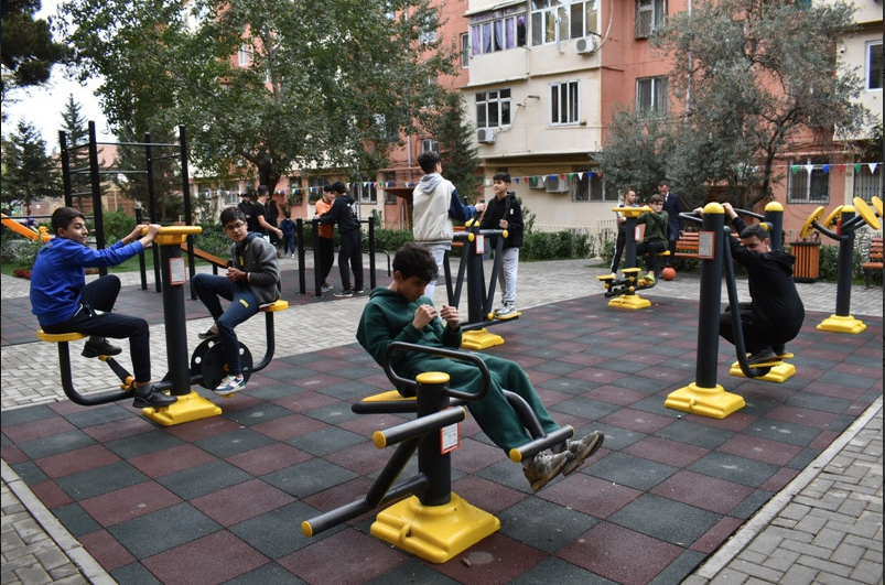 Abadlaşdırılan növbəti həyətdə əlil və sağlamlıq imkanları məhdud insanların rahat hərəkəti nəzərə alınıb, bütün yaş qrupları üzrə uşaqların inkişafı üçün əlverişli şəraitin yaradılması, gənclərin asudə vaxtlarının səmərəli keçirmələri və onlarda sistematik idmanla məşğulolma refleksinin yaradılması məqsədilə ərazidə süni örtüklü mini futbol stadionu, şahmat meydançası, müxtəlif idman qurğuları, uşaq meydançaları salınıb. Eyni zamanda, ərazidə 5 söhbətgah, çoxsaylı oturacaqlar, tullantılar üçün qutular, quş yuvaları və pişik evləri quraşdırılıb.