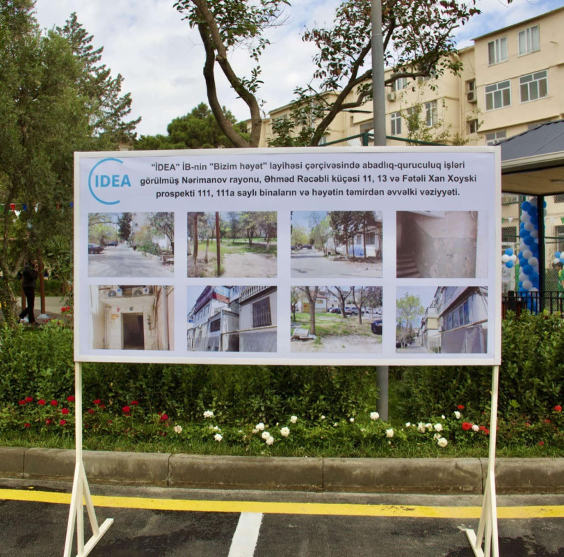 Nərimanov rayonunda IDEA-nın “Bizim Həyat” layihəsi çərçivəsində yenidən qurulan daha bir həyətin açılışı olub. Fətəli Xan Xoyski küçəsi 111, 11a, Əhməd Rəcəbli küçəsi 11 və 13 ünvanlarında yerləşən həyət, müxtəlif idman qurğuları, uşaq meydançası, idman meydançası, həmçinin söhbətgahlar, çoxsaylı oturacaqlar və s. şəraitlə ilə təmin edilib. Ərazidə 200-dən çox ağac, sarmaşan bitkilər və minlərlə kollar əkilmişdir.