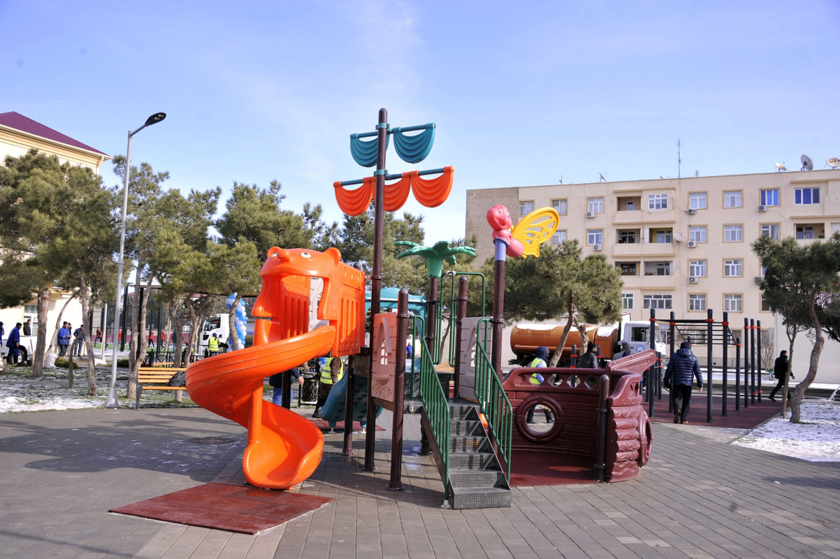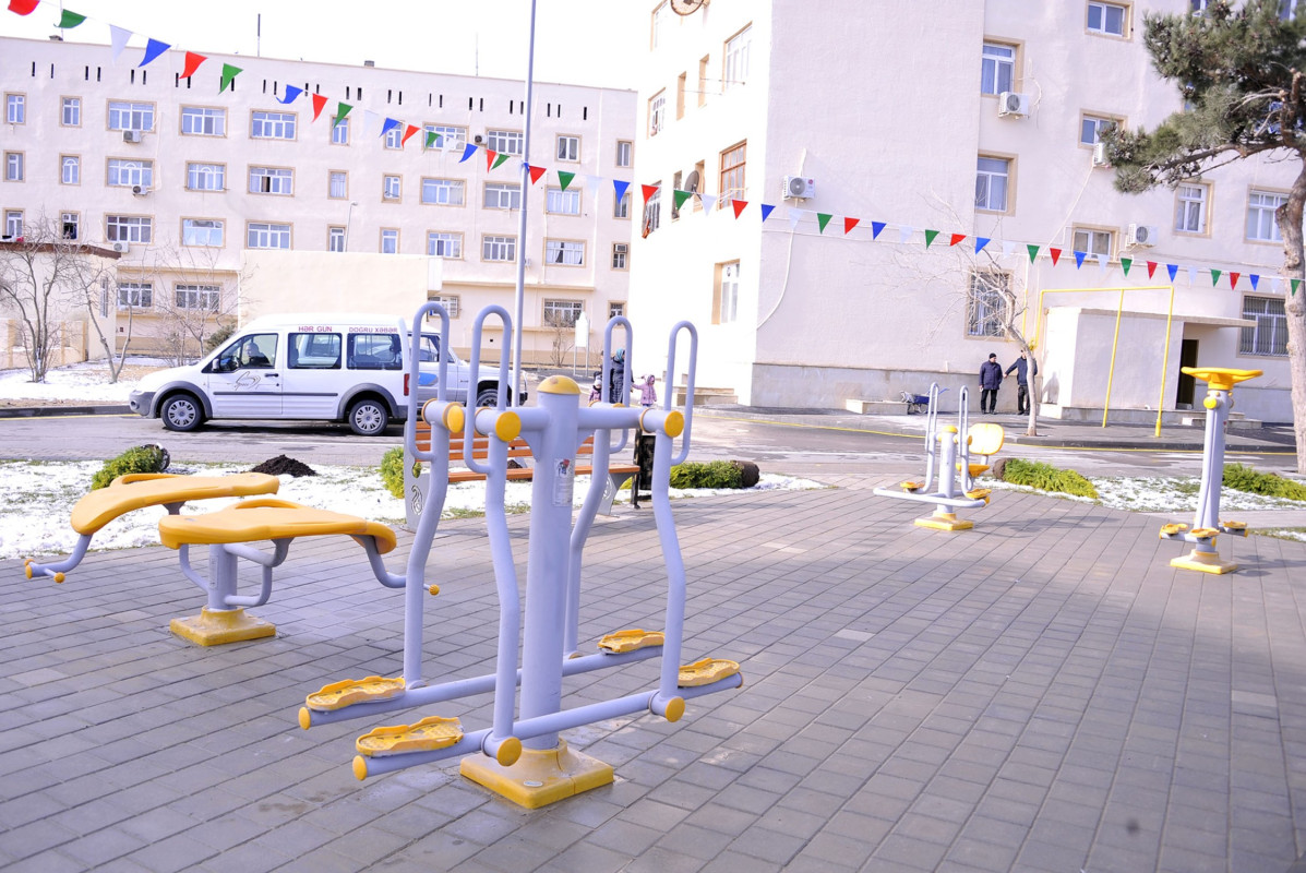 Abadlaşdırılan növbəti həyətdə əlil və sağlamlıq imkanları məhdud olan insanların rahat hərəkəti nəzərə alınıb, bütün yaş qrupları üzrə uşaqların inkişafı üçün əlverişli şəraitin yaradılması, gənclərin asudə vaxtlarının səmərəli keçirmələri və onlarda sistematik idmanla məşğulolma refleksinin yaradılması məqsədilə müxtəlif idman qurğuları, futbol mehdançası, şahmat meydançası, uşaq meydançası salınıb.