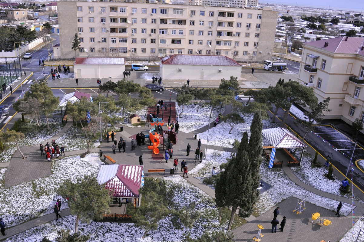 Sakinlərin istək və maraqları nəzərə alınaraq, həyətdə yeni işıqlandırma dirəkləri quraşdırılıb, binaların fasadları, dam örtükləri və giriş hissələri tam təmir olunub. Həyətin ərazisindəki mövcud yaşıllıqların bərpası ilə yanaşı, əlavə olaraq 150 ədəd ağac və kollar əkilib və 3000 kv.m ərazidə yaşıllıq zolağı salınıb.