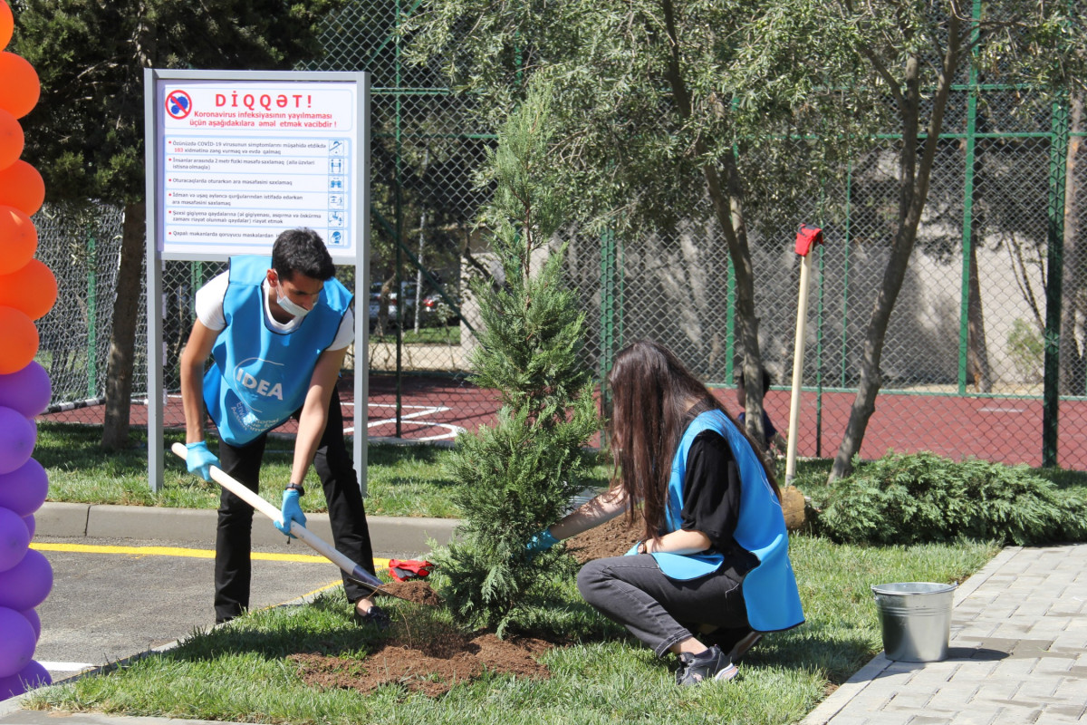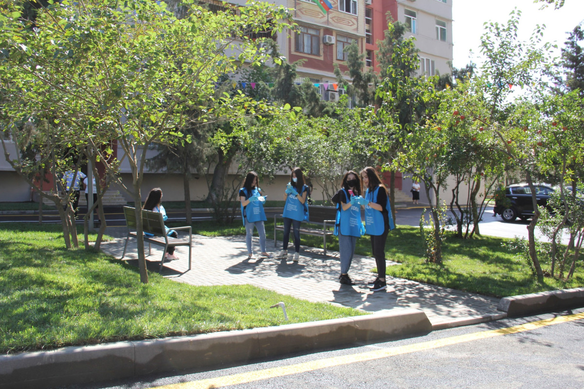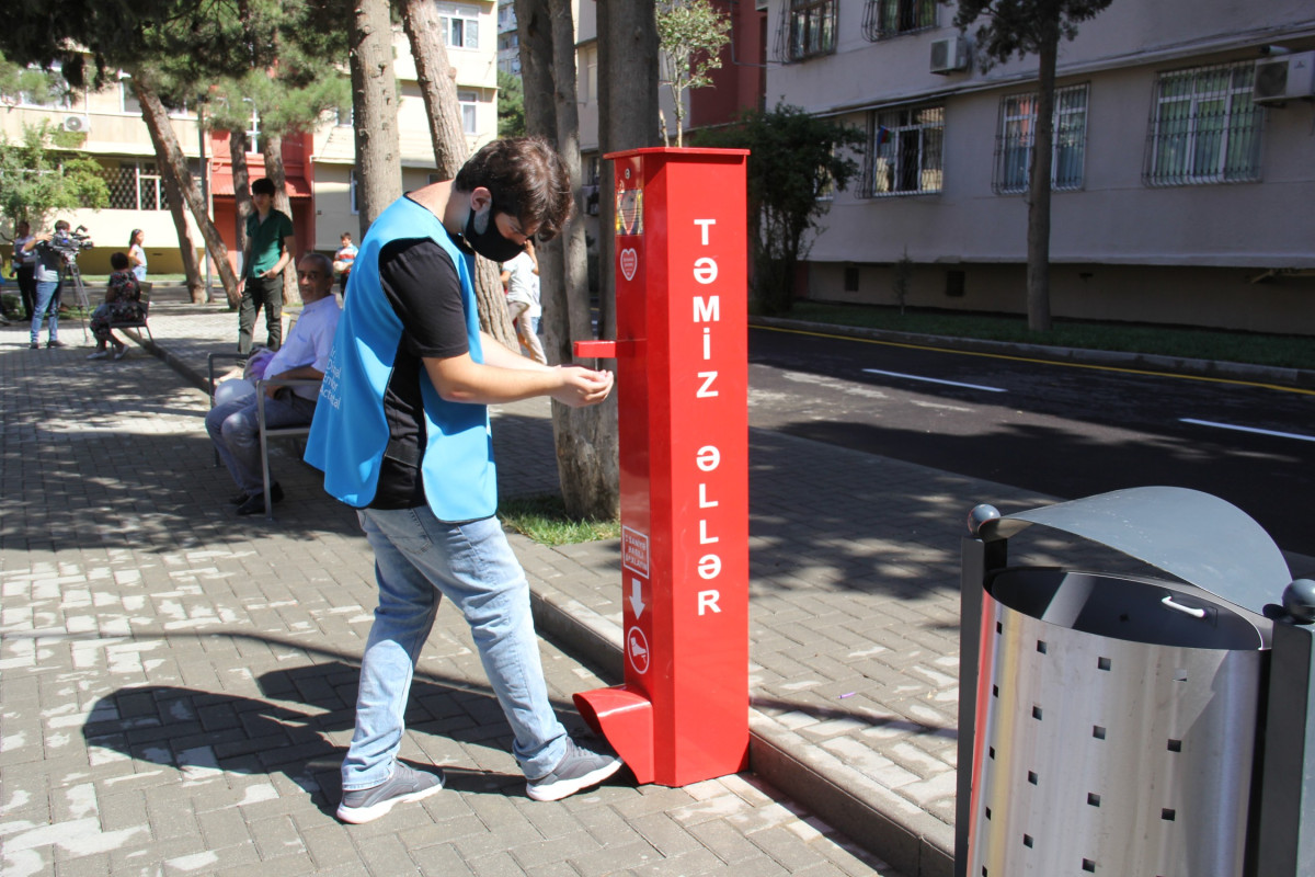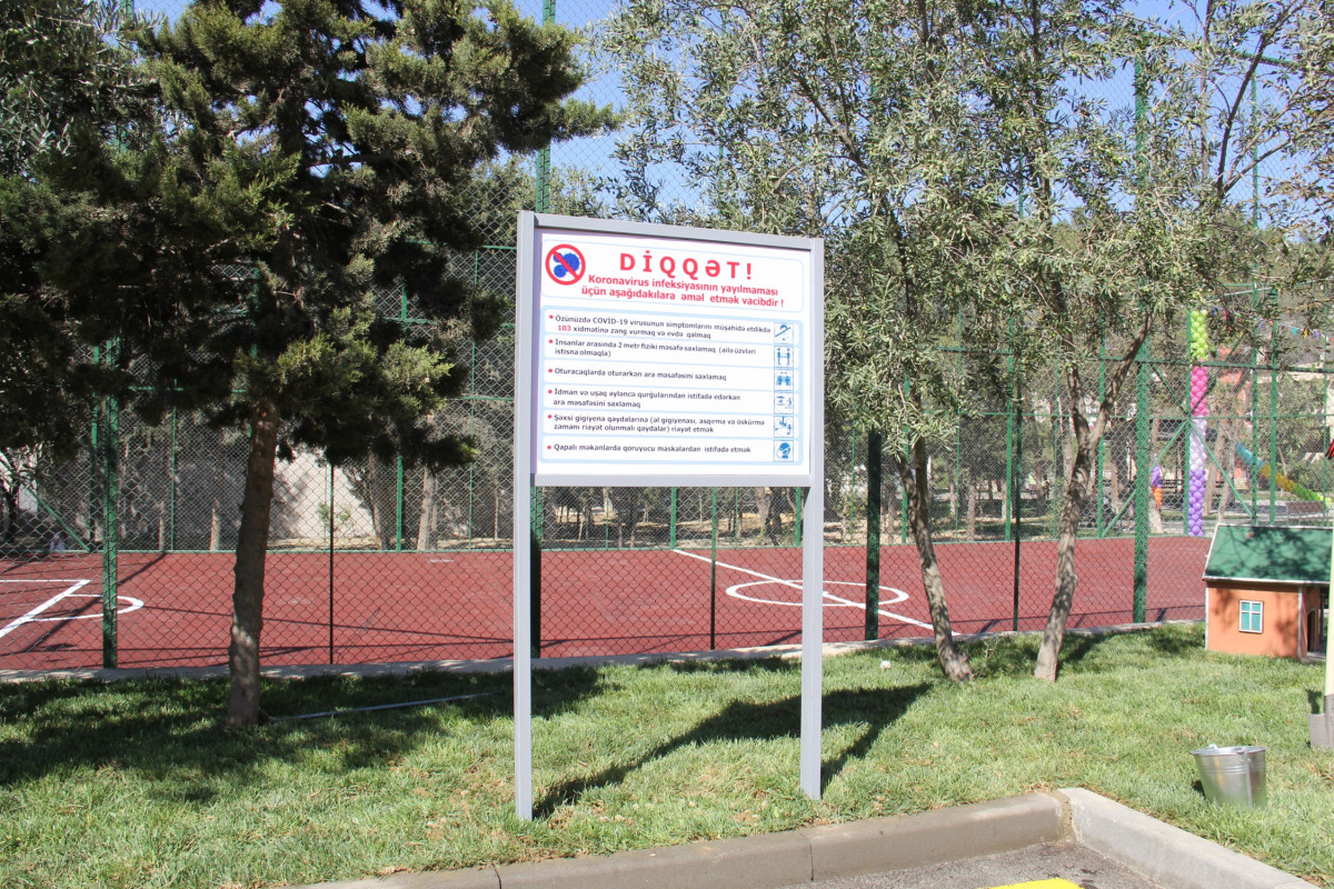 Yenilənmiş həyətdə karantin dövrünün tələblərinə uyğun olaraq tibbi-profilaktiki tədbirlər həyata keçirilib, dezinfeksiya dispanserləri qoyulub, karantin rejimi qaydalarına riayət olunması ilə bağlı xəbərdarlıq edən maarifləndirici lövhələr quraşdırılıb.