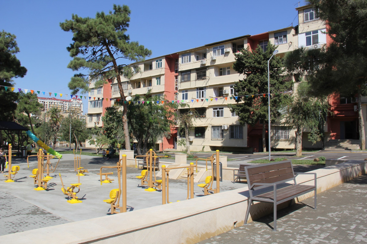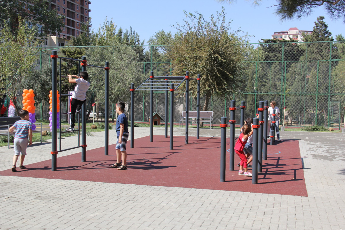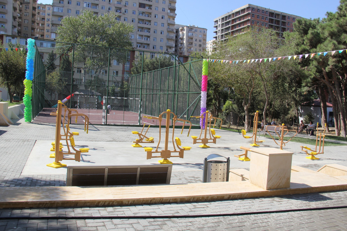 Abadlaşdırılan növbəti həyətdə sağlamlıq imkanları məhdud olan insanların rahat hərəkəti nəzərə alınıb, bütün yaş qrupları üzrə uşaqların inkişafı üçün əlverişli şəraitin yaradılması, gənclərin asudə vaxtlarının səmərəli keçirmələri və onlarda sistematik idmanla məşğulolma refleksinin yaradılması məqsədilə müxtəlif idman qurğuları, futbol mehdançası, şahmat meydançası, uşaqlar üçün oyun meydançası salınıb.