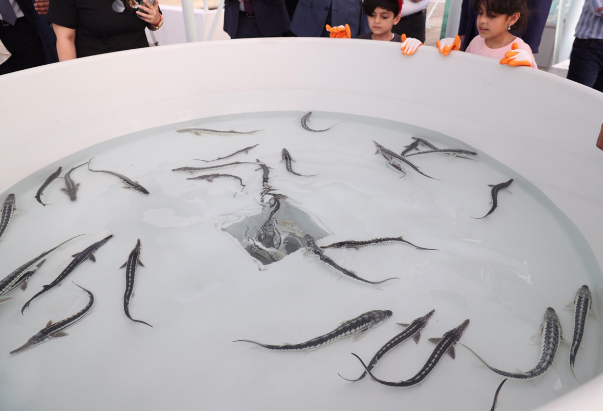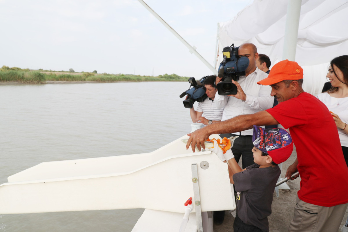 Leyla Əliyeva nərə balıqlarının Xəzərə buraxılması mərasimində iştirak edib