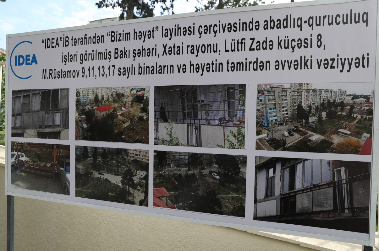 IDEA İctimai Birliyi tərəfindən həyata keçirilən “Bizim həyət” layihəsi çərçivəsində abadlaşdırılan növbəti həyət oktyabrın 11-də sakinlərin istifadəsinə verilib. Yenilənmiş həyət Bakının Xətai rayonu, Məzahir Rüstəmov küçəsi, 9, 11, 13, 17 ünvanında yerləşir və 2300 sakinin yaşadığı məhəlləni əhatə edir.