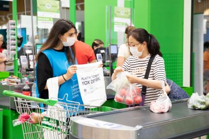 "Plastiksiz iyul" hərəkatı çərçivəsində alıcılara eko-çantalar paylanılıb