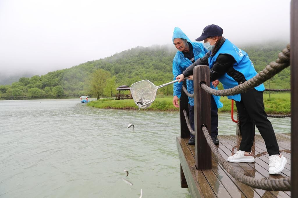“Zəngin hövzələr” layihəsi çərçivəsində keçirilən ilk tədbir zamanı İDEA İctimai Birliyi və Ekologiya və Təbii Sərvətlər Nazirliyinin nümayəndələrinin iştirakı ilə Qəbələ rayonundakı Nohurqışlaq gölünə 10 000 ədəd 50-70 qramlıq forel körpələri buraxılıb.