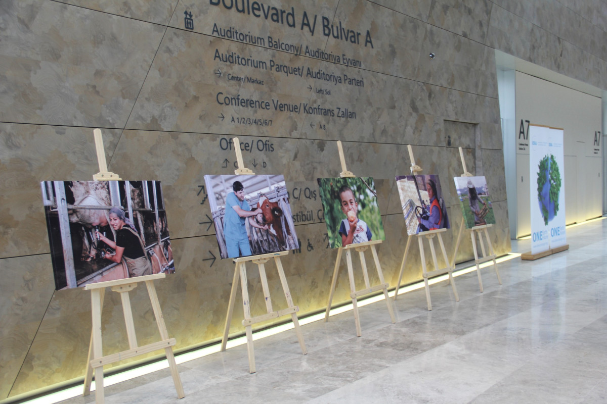 Əvvəlcə tədbirin qonaqları Bakı Konqres Mərkəzində təşkil edilən #MənimAddımlarım (#MyActions) mövzusunda fotoşəkillərdən, həmçinin təşkilatçılar tərəfindən təqdim edilən nəşrlər və bukletlərdən ibarət sərgi ilə tanış olub. Tədbir çərçivəsində təşkil edilən sərgiyə Masallı, Ağdam, Lənkəran, İsmayıllı və Balakən rayonlarından olan qadınlardan ibarət Qadın İnkişaf Qruplarının nümayəndələri də öz əlişləri ilə qoşulublar. Qeyd edək ki, sözügedən qruplar Azərbaycan Respublikasının Kənd Təsərrüfatı Nazirliyi tərəfindən icra edilən, Azərbaycan Hökuməti və Dünya Bankının birgə maliyyələşdirdiyi Azərbaycan İkinci Kənd İnvestisiya layihəsi çərçivəsində yaradılmışdır. Bu cür qrupların yaradılmasında əsas məqsəd kəndlərdə biznesin qurulması, inkişafı, idarə edilməsi və genişləndirilməsi yolu ilə əhalinin rifahının yaxşılaşdırılmasıdır.