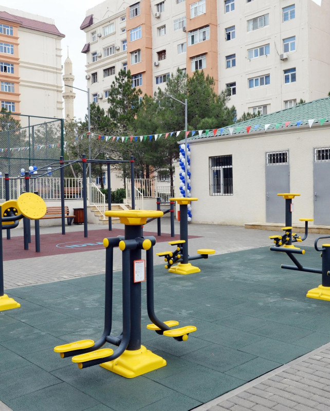Abadlaşdırılan növbəti həyətdə fiziki məhdudiyyətli və sağlamlıq imkanları zəif olan insanların rahat hərəkəti nəzərə alınıb, bütün yaş qrupları üzrə uşaqların əyləncəli vaxt keçirməsi üçün şərait yaradılıb, gənclərin asudə vaxtlarının səmərəli keçirmələri və onlarda sistematik idmanla məşğulolma refleksinin yaradılması məqsədilə ərazidə süni örtüklü mini futbol stadionu, şahmat meydançası, müxtəlif idman qurğuları və uşaq meydançaları salınıb. Eyni zamanda, ərazidə 4 söhbətgah, çoxsaylı oturacaqlar, tullantılar üçün qutular, quş yuvaları və pişik evləri quraşdırılıb.
