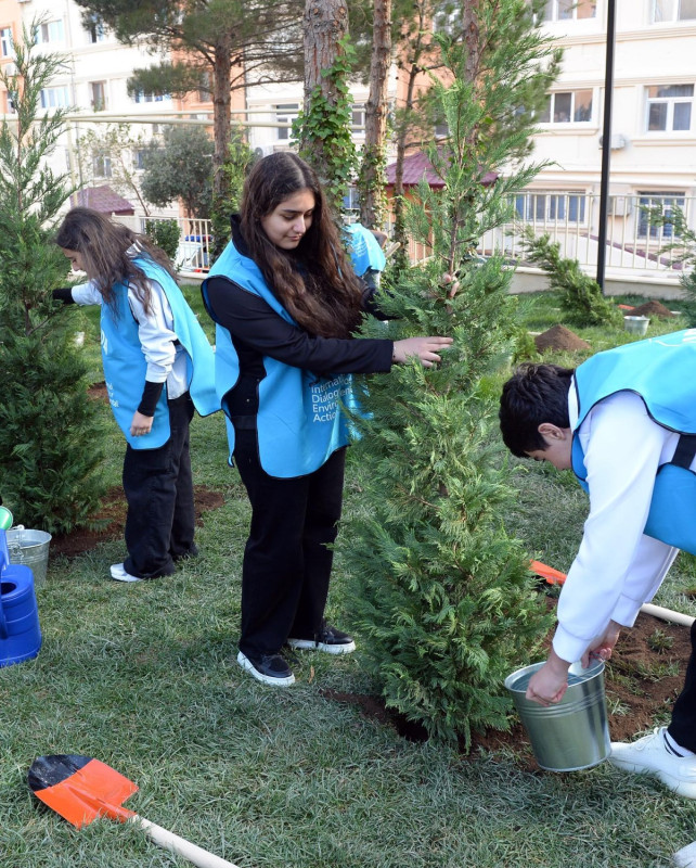 Heydər Əliyev Fondunun vitse-prezidenti, İDEA İctimai Birliyinin təsisçisi və rəhbəri Leyla Əliyeva həyətin açılışında, o cümlədən tədbir zamanı keçirilmiş kütləvi ağacəkmədə iştirak edib.