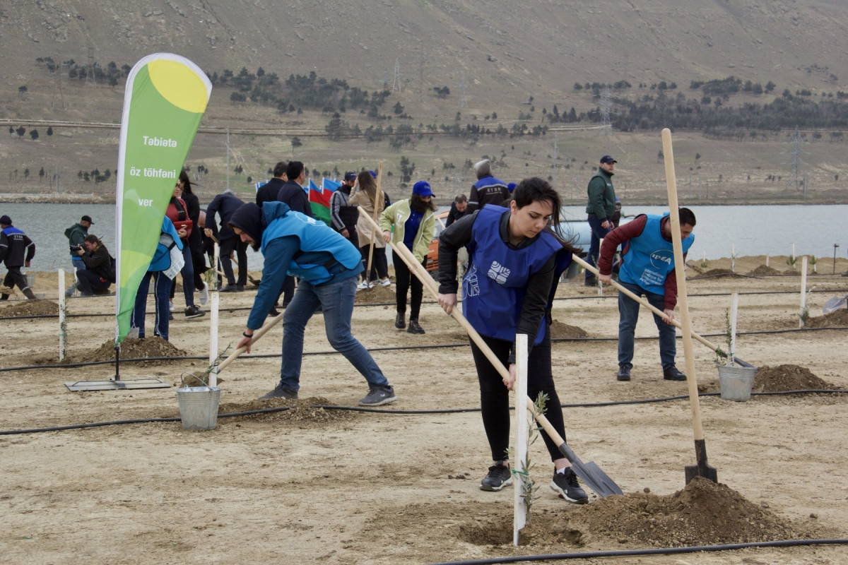 Aksiya zamanı 3 hektar ərazidə Abşeron yarımadasının torpaq-iqlim şəraitinə uyğun 2000-dən çox Eldar şamı və zeytun ağacı əkilib.