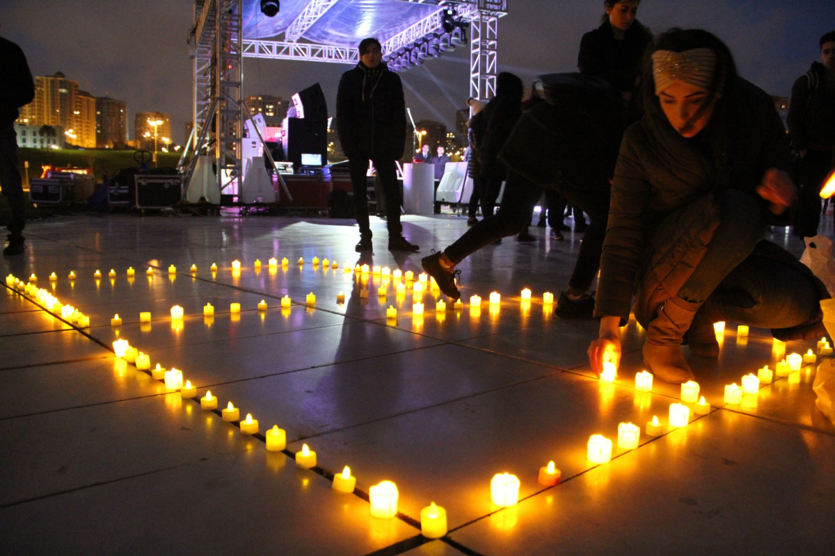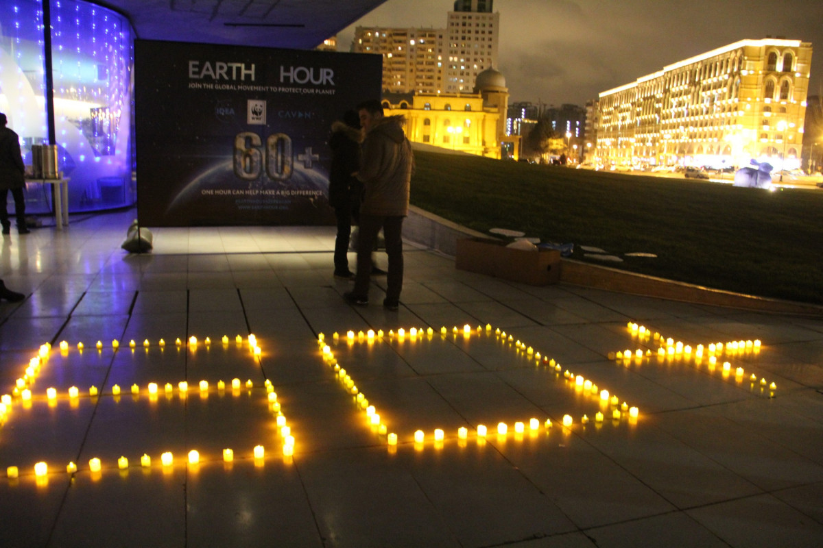 Aksiya iştirakçıları dünya memarlığının incisi sayılan Heydər Əliyev Mərkəzinin parkında toplaşaraq şəhərin mərkəzi hissəsində yerləşən böyük binaların fasad işıqlarının bir saatlıq söndürülməsi prosesini müşahidə ediblər. Gənclər simvolik “qırmızı düymə”yə basaraq birgə aksiyaya start veriblər. Daha sonra onlar rəmzi gerisayımda kampaniyanın simvolu olan “60+” yazısının şamlarla işıqlandırılmasında və velosiped yürüşündə iştirak ediblər.