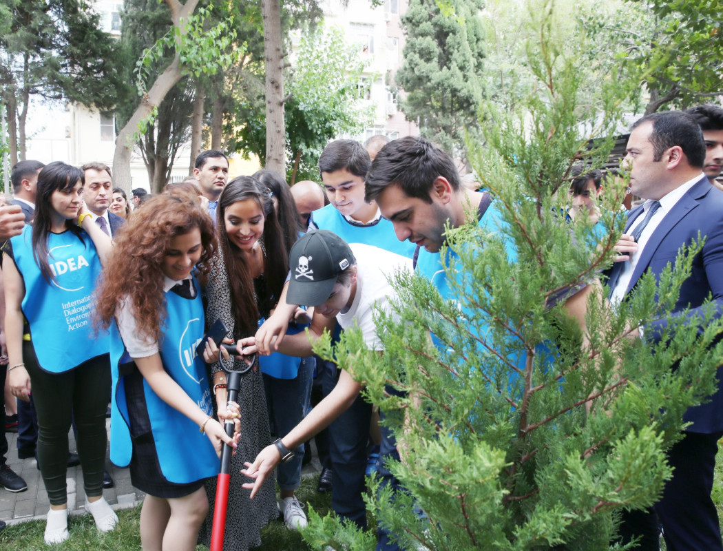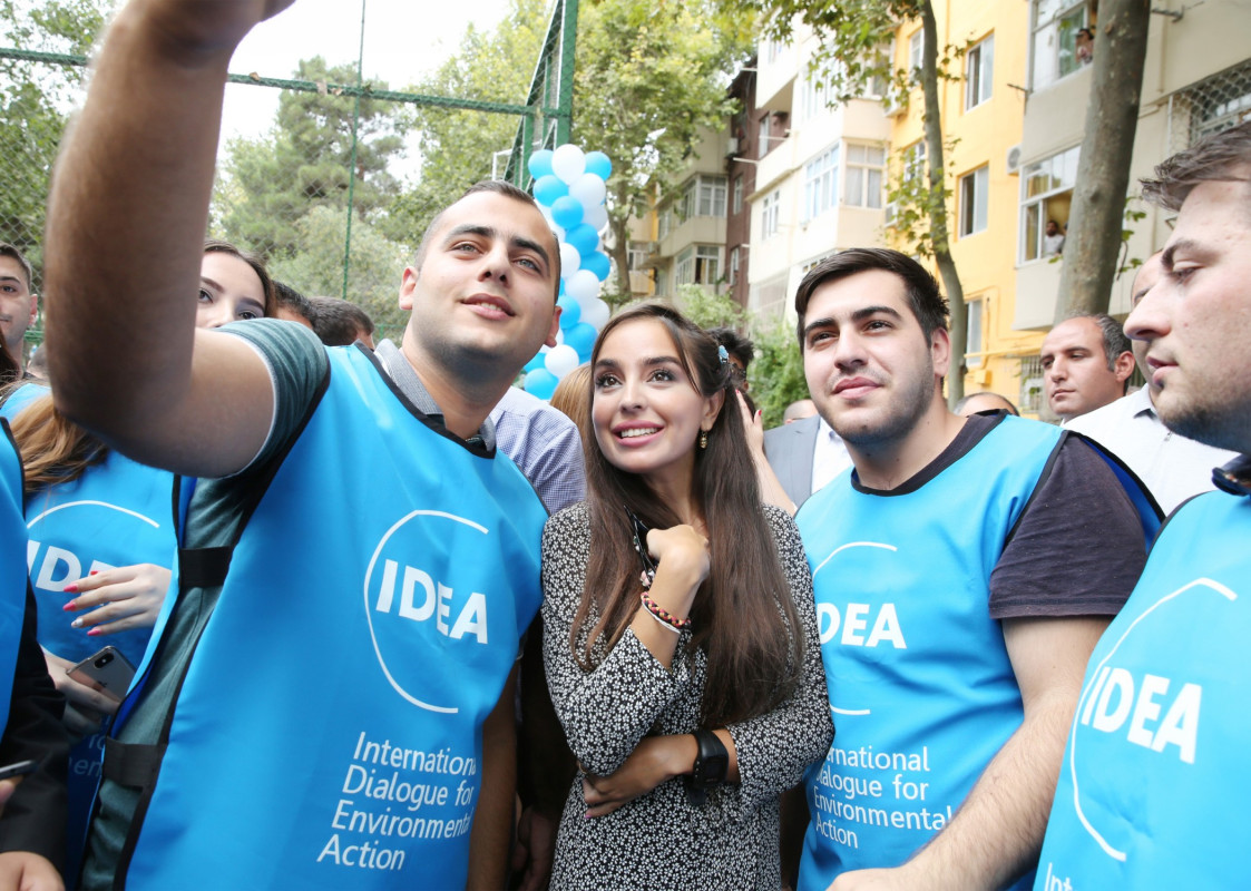 Leyla Aliyeva, Vice President of the Heydar Aliyev Foundation and founder and head of the IDEA Public Union, attended the opening of the courtyard, as well as the tree-planting campaign held during the event.
