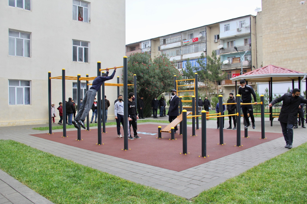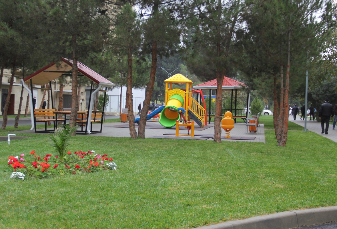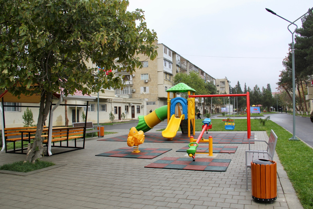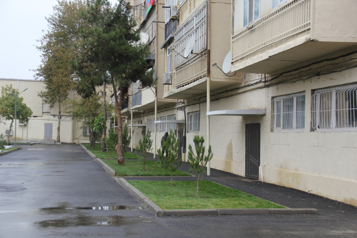The renovated yard covers the buildings at 9 Energetik Street and 8 and 10 Lieutenant Mahmud Ibrahimov Street in the city of Shirvan.