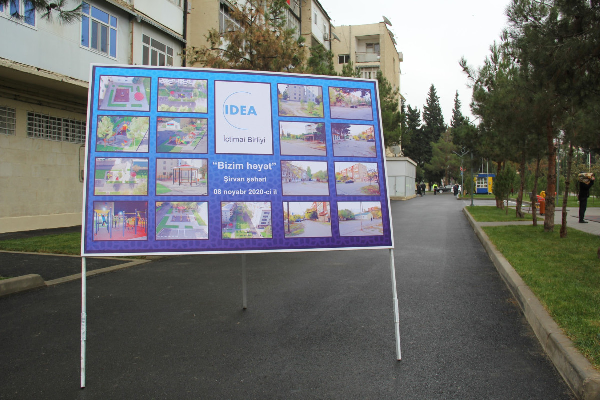 Within the framework of the "Our Yard" project, carried out at the initiative of Leyla Aliyeva, Vice President of the Heydar Aliyev Foundation and founder and head of the IDEA Public Union, a yard in the city of Shirvan, where nearly 700 residents live, has been renovated and opened for use by the residents.