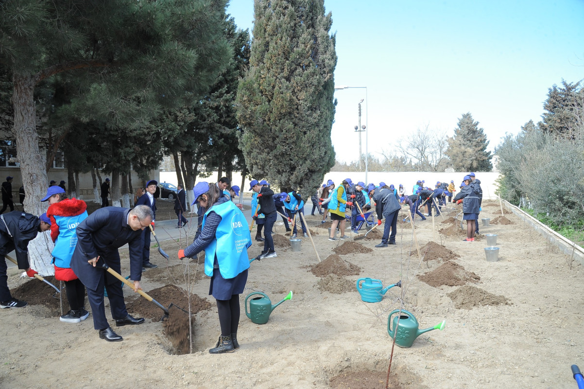 During the first action of the project, 100 almond, pomegranate, and plum trees were planted together with students at School No. 234 in the Khazar district with the participation of Leyla Aliyeva.
