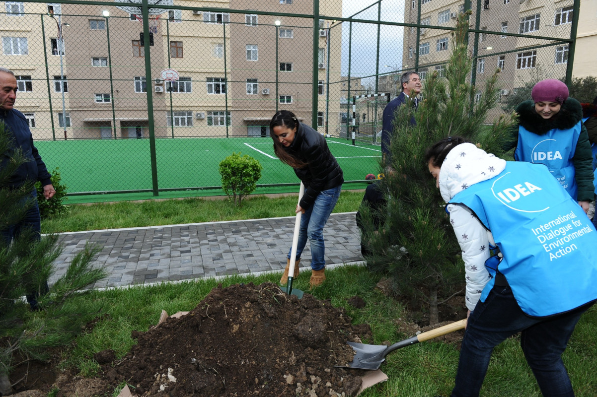 Leyla Aliyeva, Vice President of the Heydar Aliyev Foundation, founder and head of the IDEA Public Union, participated in the opening of the yard, including the mass tree planting event held during the ceremony.