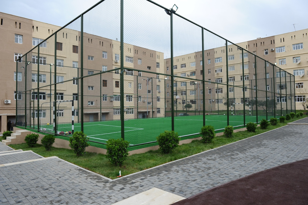 With the support of the Garadagh District Executive Authority, in the yard renovated within the "Our Yard" project and covering an area of 2 hectares, entertainment equipment has been installed to facilitate the movement of people with disabilities and limited health abilities, as well as to provide favorable conditions for the development of children of all age groups. A small playground consisting of a football field and sports equipment has been established. The primary aim of creating such playgrounds is to encourage young people to lead a healthy lifestyle, strengthen their health, spend their leisure time effectively, and develop a reflex for systematic sports practice. Additionally, a special area has been created in the yard for walking animals.