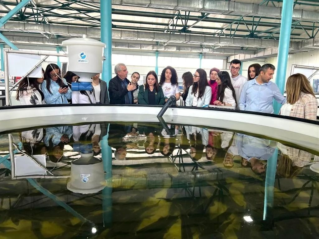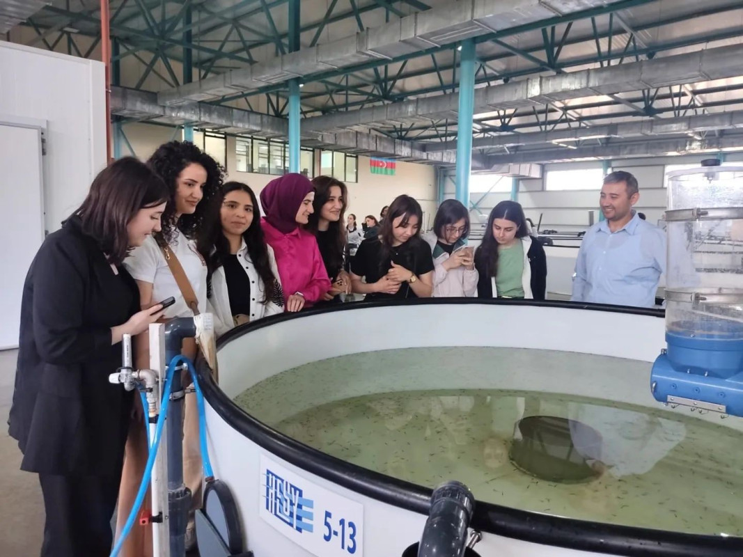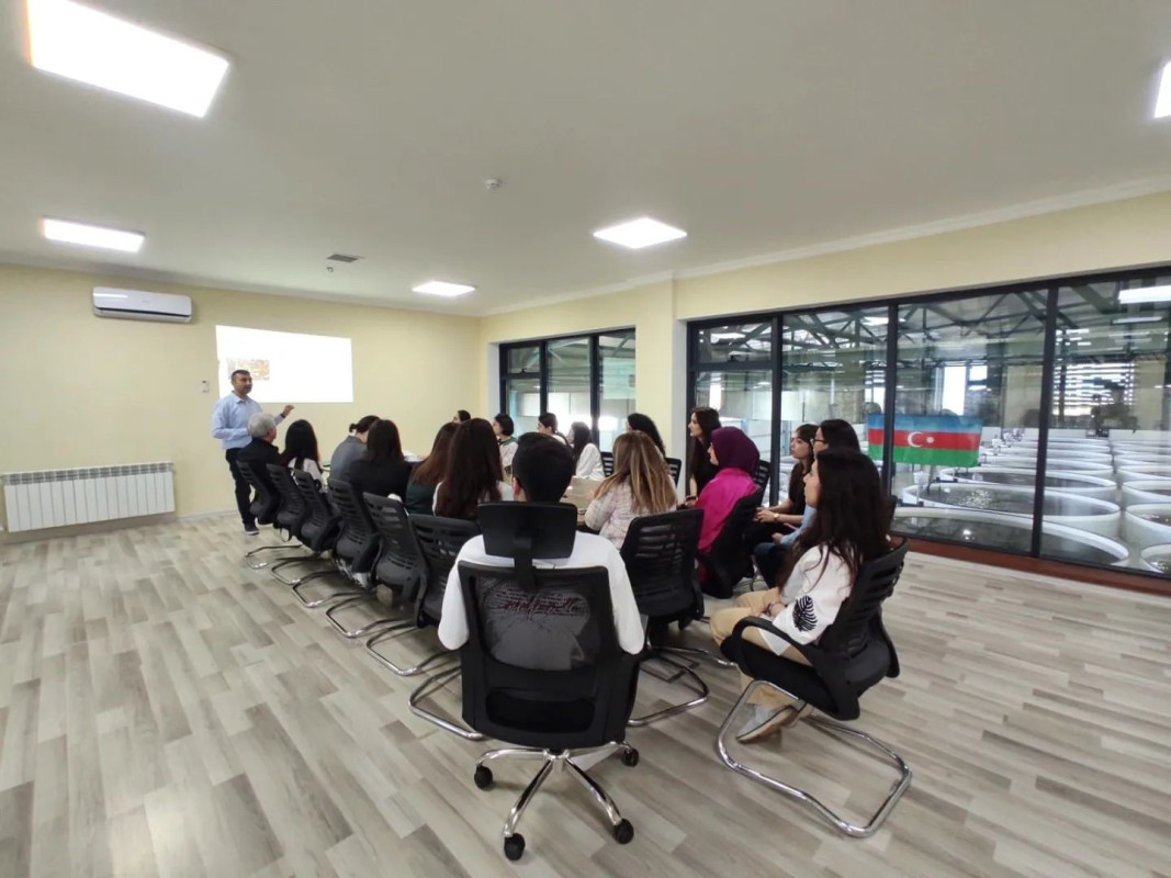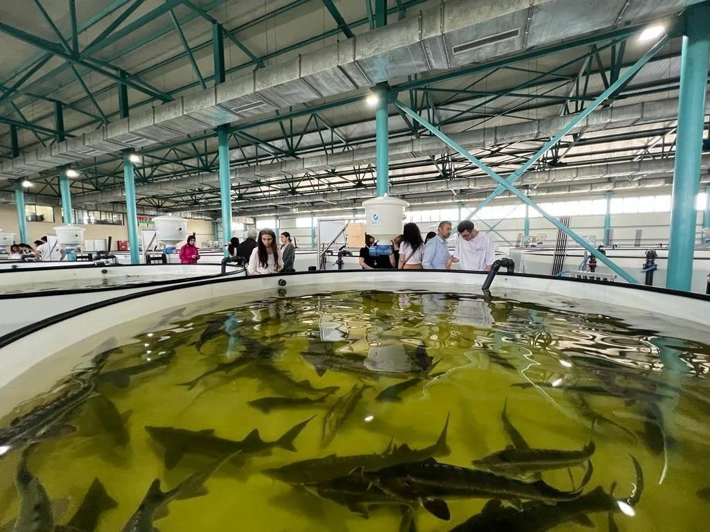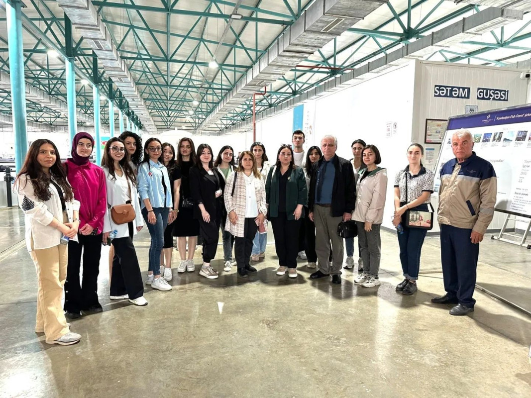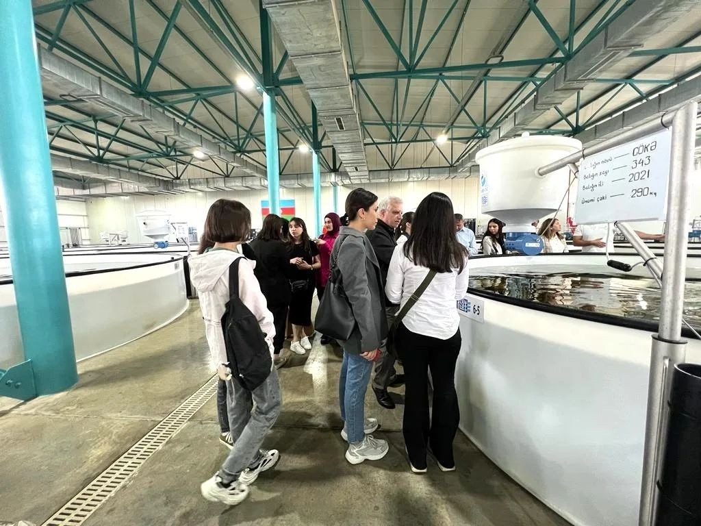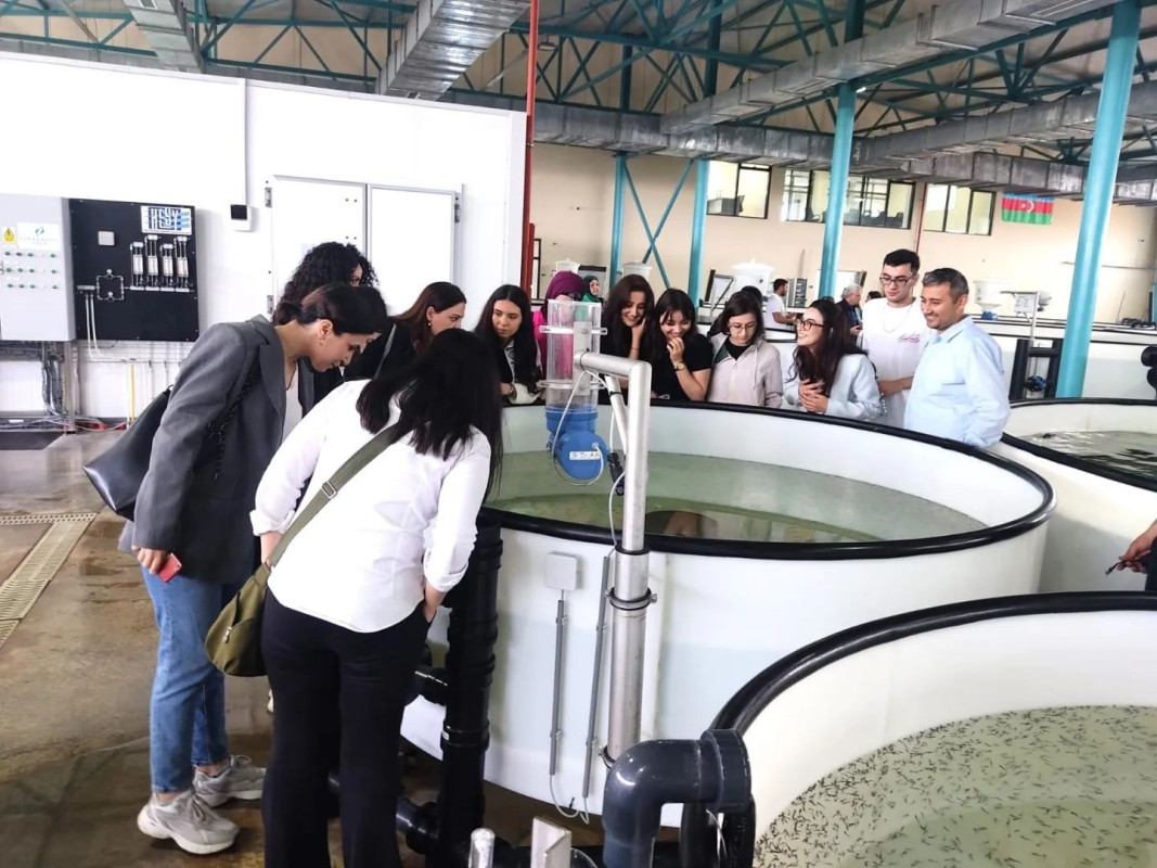 During the event, master's students and academic staff of BDU's Faculty of Biology got acquainted with the process of producing environmentally friendly and healthy seafood using sustainable methods. For the participants, a comprehensive presentation on aquaculture fishing and the cultivation of sturgeon species was held, along with an excursion to the farm area and the sea zone of the Neftchala Nərə Fish Breeding Plant.