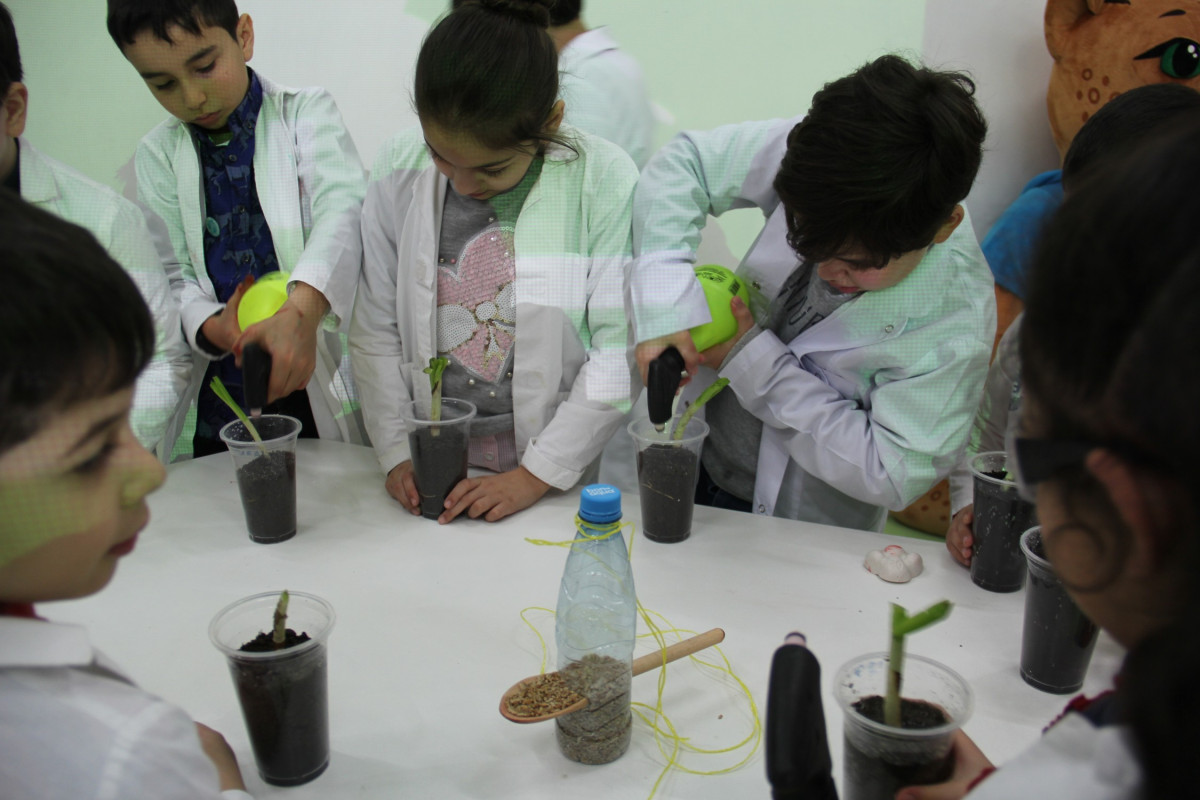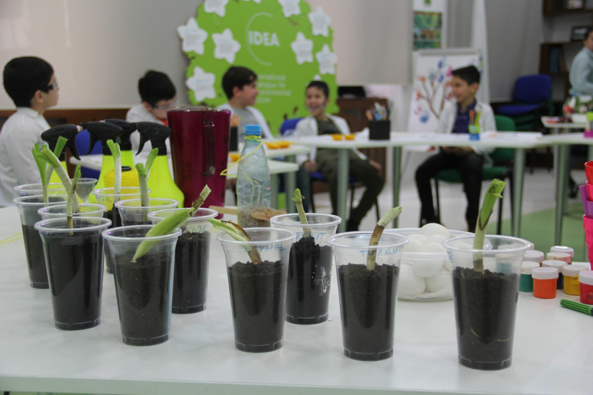 The “Little Ecologists” made birdhouses from plastic bottles, participated in experiments related to the proper planting of seeds, as well as in several experiments reflecting Novruz traditions. Special coloring sheets were distributed to the participants of the “Eco Laboratory” to explain the UN Sustainable Development Goals in a simpler and more entertaining way and to help them understand them more easily.