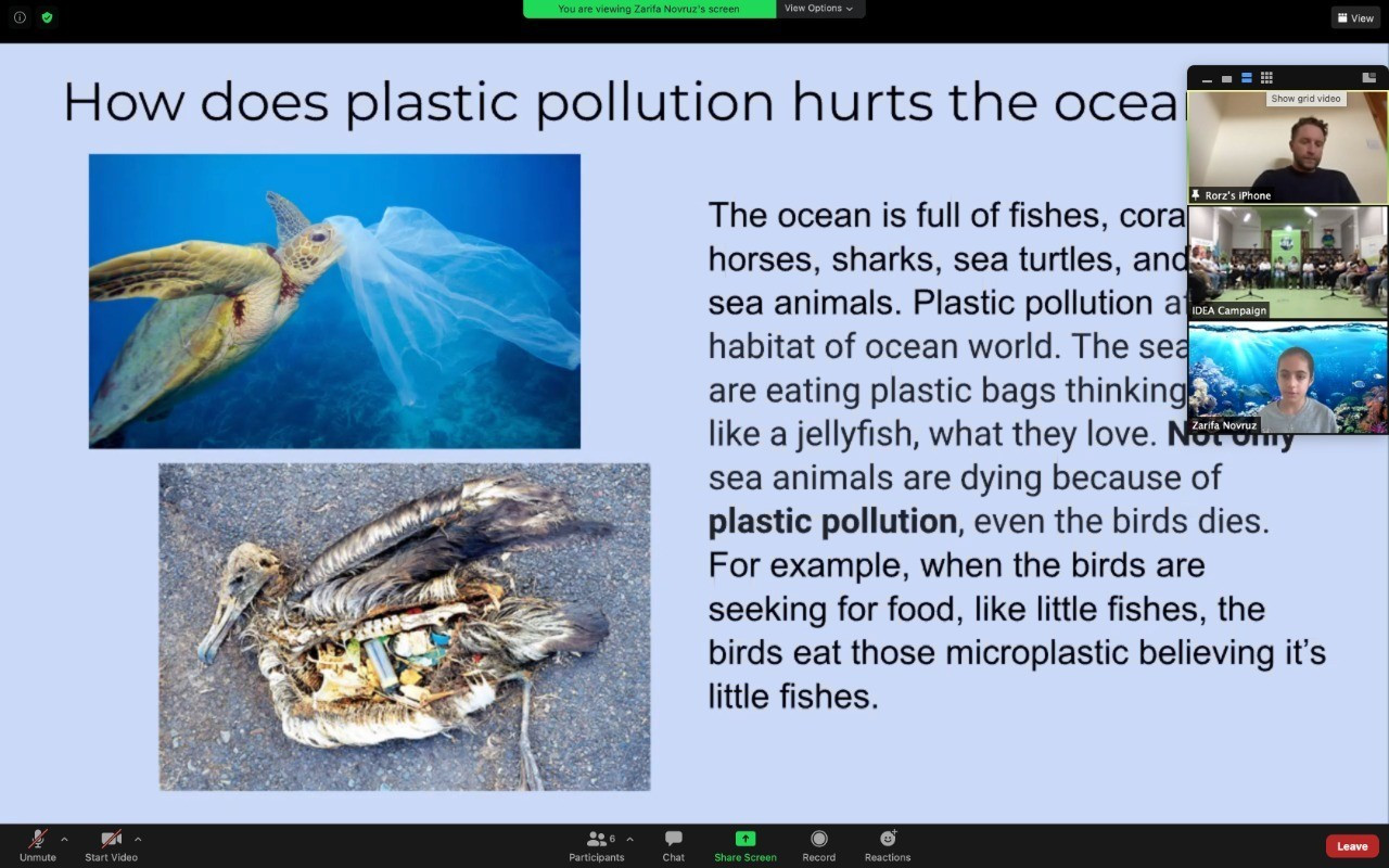 On July 23, the Green Conversation Club took place with the participation of an enthusiastic group of young nature lovers engaged in discussions on plastic pollution. During the event, young eco-activist Zarifa gave an online presentation about plastics in the ocean, and marine biologist Rory Mur from the United Kingdom delivered a brief lecture.