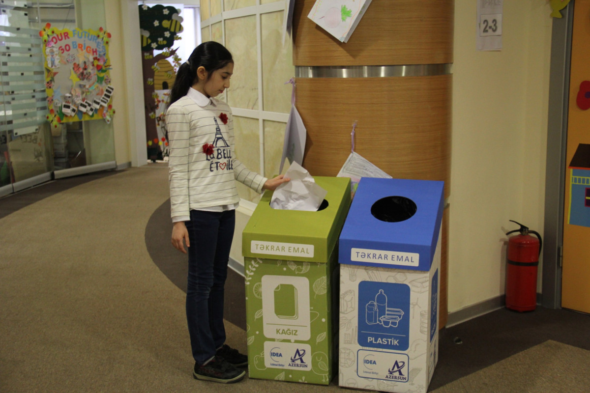 On 23 February, IDEA Campaign along with the Ministry of Education and "Azersun" company launched a plastic and paper recycling project as part of the waste management program. The project encompasses the placement of recycle bins in all schools and higher education institutions of the capital.